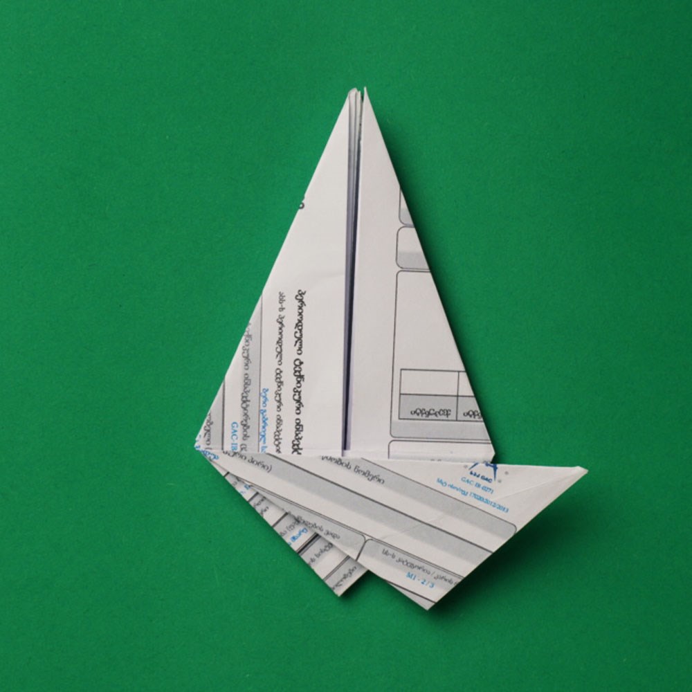კედლები გადაკეცეთ ჩრდილოეთ და სამხრეთ მიმართულებით ისე, თითქოს ნავი იყოს. (იგივე გაიმეორეთ მეორე მხრიდანაც)