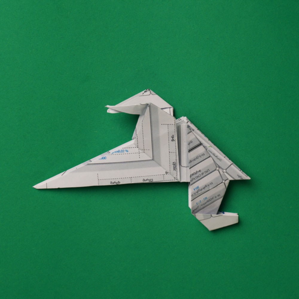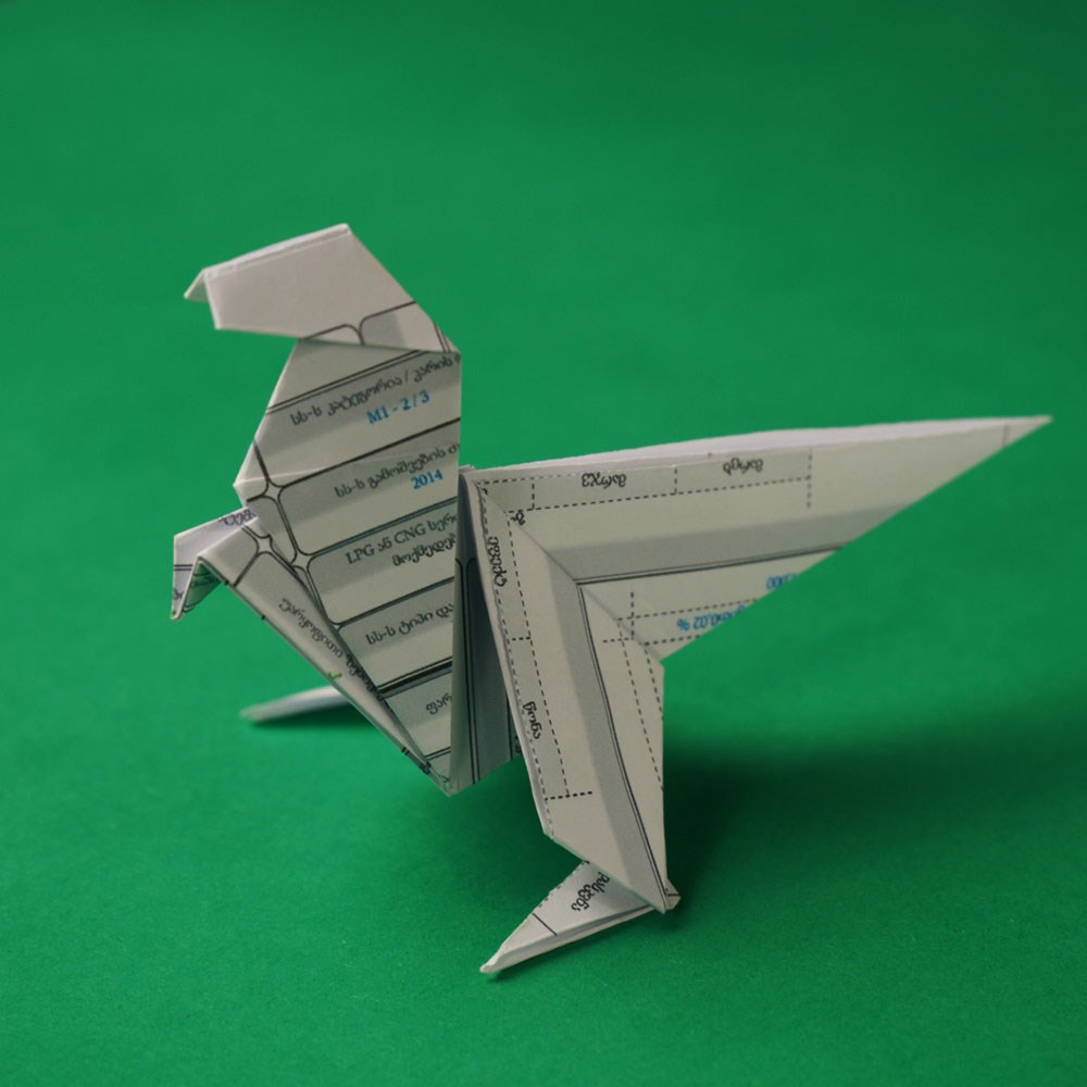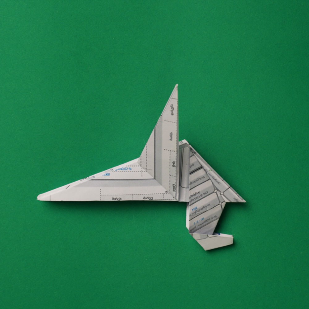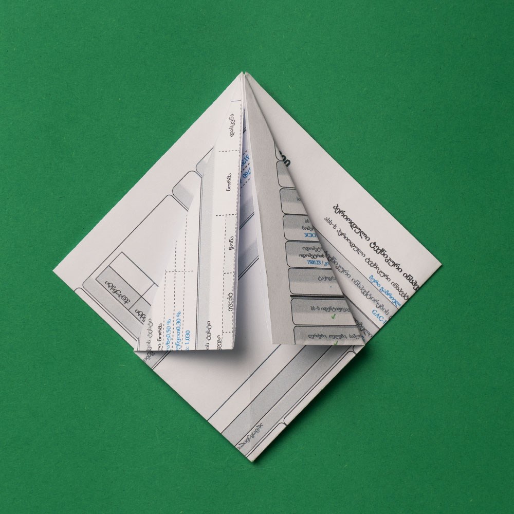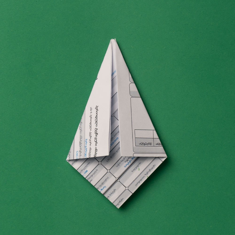 შთაბერეთ თქვენს ფურცელს სული, მიეცით „სიმაღლე“, „დე, აითვისოს მან სივრცე“, _ ანუ „ამოკეცეთ“ სწორედ იმ ნაკეცებზე, რომელიც 4 კვადრატად დაკეცვისა და დიაგონალური კეცვის დროს გაუჩნდა.
