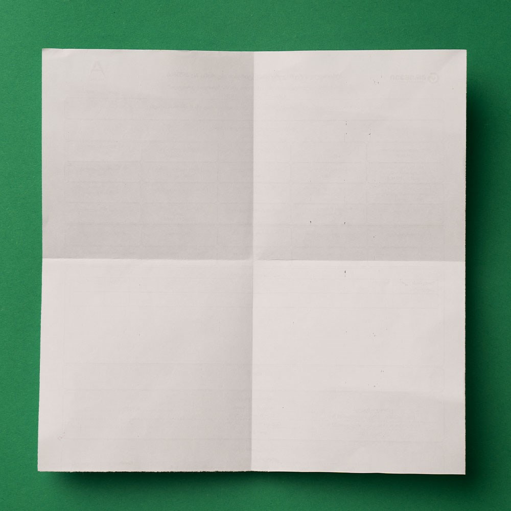 მთლიანი ფურცელი გადაკეცეთ ისე, რომ 4 თანაბარი ზომის კვადრატი მიიღოთ.